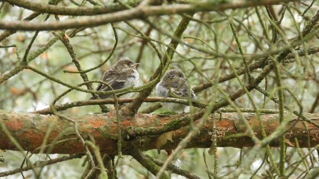 Слетки Мухоловки Пеструшки, наблюдение птиц в Великом Новгороде, 29 июня 2025