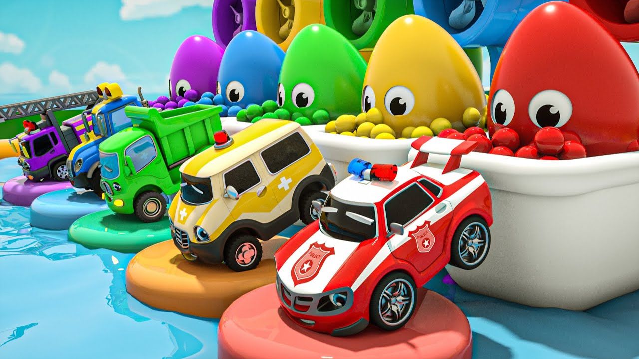 Малышка Акула волшебные яйца и разноцветные полицейские машины Детские стишки и песенки для малышей