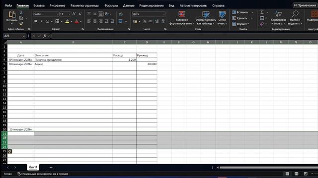 Вместе делаем таблицу в Excel для расчета расхода и поступления денег.
