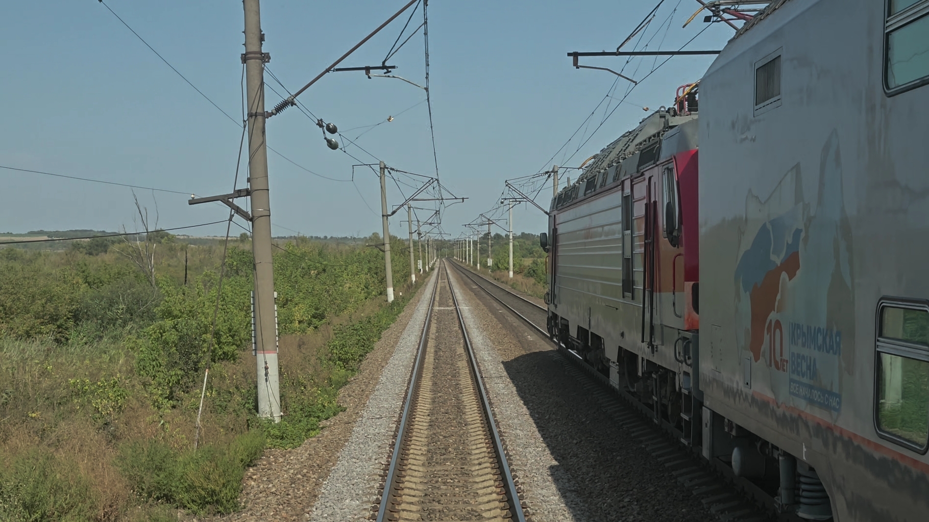 из окна поезда | встречная "Таврия" ЭП20 с поездом №27 Симферополь–Москва