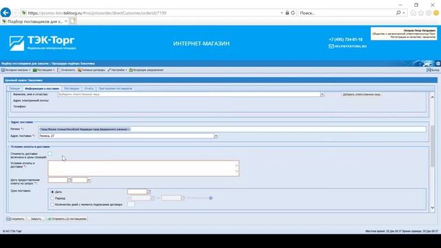 Создание спецификации закупки с выбранными позициями / Интернет - магазин / Организаторам