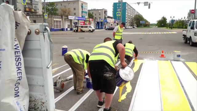 При обновлении дорожной разметки в Комсомольске впервые применён холодный пластик