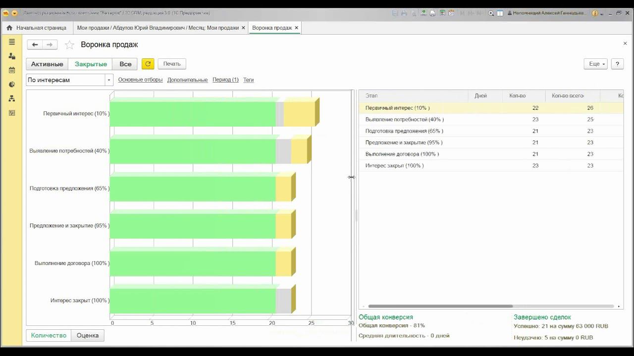 Анализ "Воронки продаж" руководителем в 1С:CRM 3.0
