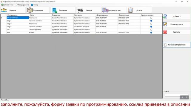 Информационная система для склада почтового отделения. Программа на C# + MS SQL. Дипломная работа