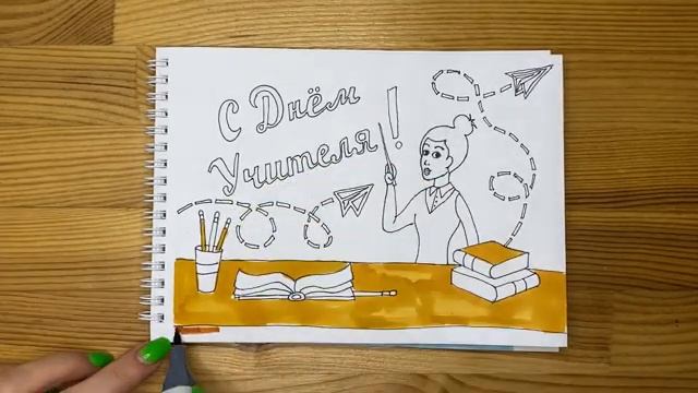 Рисунок открытки скетч маркерами на "День учителя" для скетчбука | Срисовка картинки для начинающих
