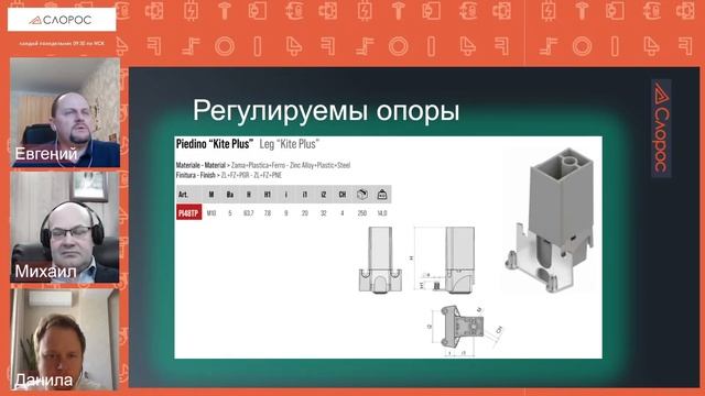 Презентация опор для мебели Потребители редко обращают внимание на функциональную фурнитуру. Но качественные опоры это важно. Почему? Узнаем в прямом эфире СЛОРОС. ЛАЙВ. Ведущие: Евгений Трофимов Данила Трофимов Михаил Славин