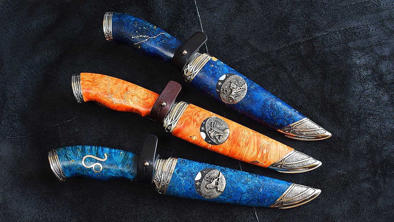 Ножи из серии "Знаки зодиака" - "ЛЕВ", "ТЕЛЕЦ" и "ВОДОЛЕЙ". Мастерская "СЛОН & Ко."
