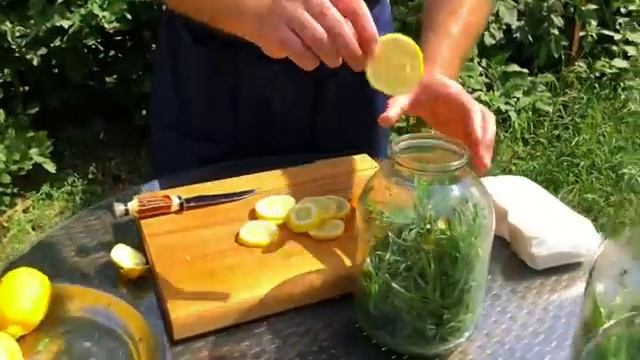 Лимон, тархун, сахар и кипящая вода