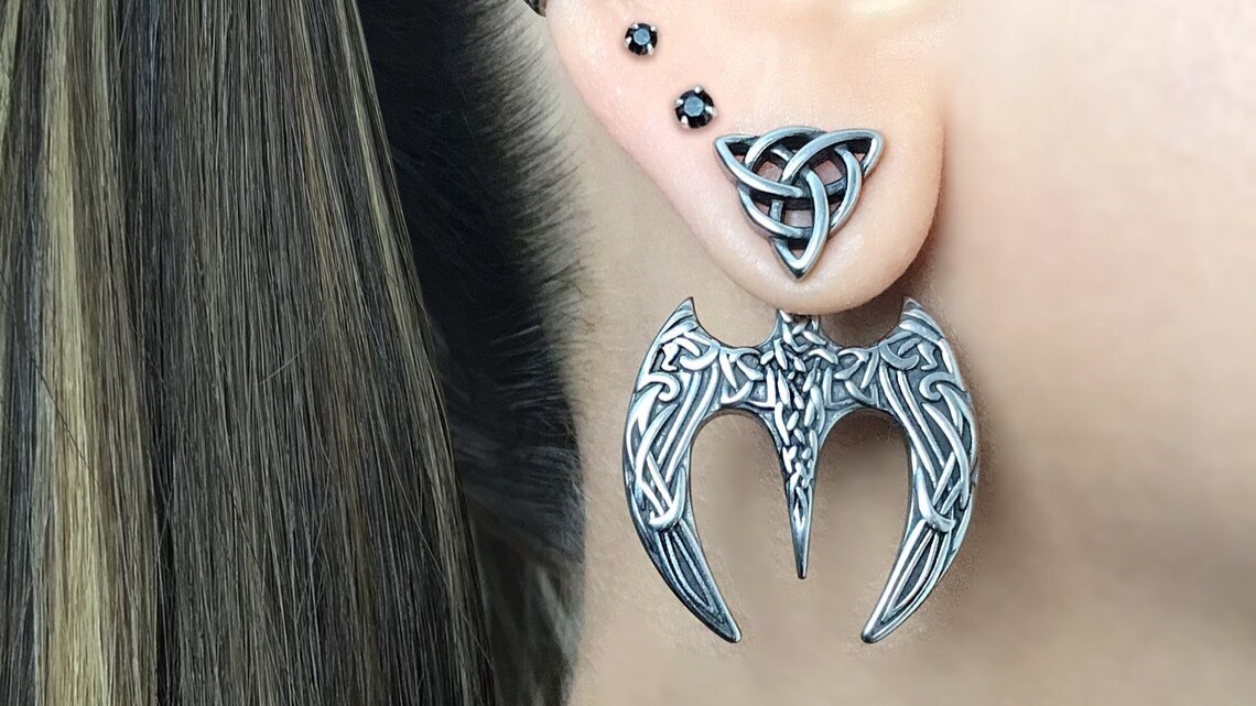 Крупные готические серьги джекеты «Скандинавский Ворон удачи» от StarfallShop