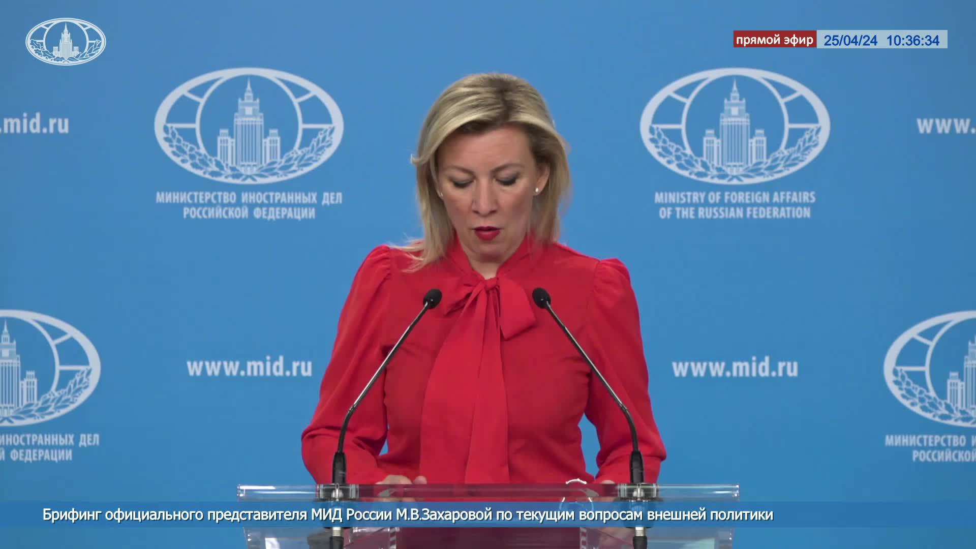 🔴 #ПрямойЭфир: Брифинг М.В.Захаровой по текущим вопросам внешней политики