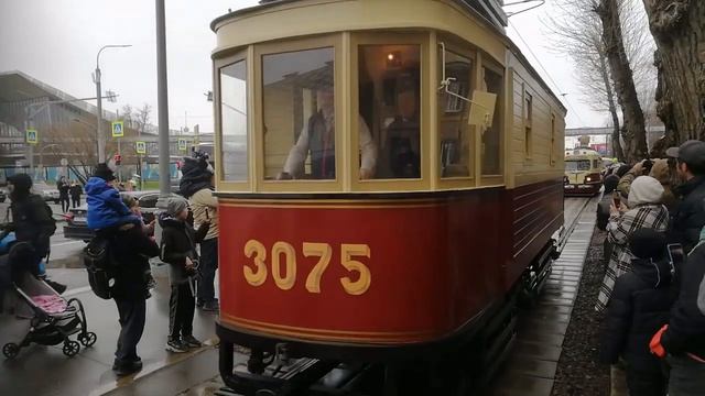 Выезд парада трамваев из депо им. Баумана , Москва 16 апреля 2022