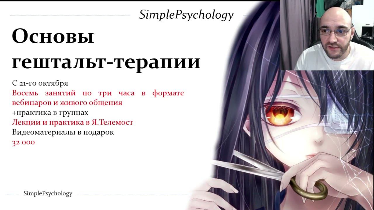 Дистанционное обучение по курсу "Основы гештальт-терапии" предполагает рассмотрение как теоретических, так и практических основ гештальт-терапии. На курсе я раскрою вам свой подход ("Когнитивная гештальт-терапия"), который включает в себя также и элементы эмоционально-образной терапии, ориентированной на решение краткосрочной терапии, краткосрочной психодинамической психотерапии (ЛОРП), когнитивно-поведенческой терапии и ряда других направлений. Мы рассмотрим краткосрочные варианты гештальт-терапии (для решения поведенческих проблем) и долгосрочный (для работы с личностными расстройствами и неврозами). Все навыки вы сможете отработать с преподавателем и в группе. ======== ☛ Подробности и запись на курс - https://boosty.to/simplepsychology/posts/94d356af-e1cb-4189-bb7c-58d979aa141f?share=post_link ☛ Мои контакты (Павел Авдеев), соц. сети и Boosty - https://hipolink.me/SimplePsychology