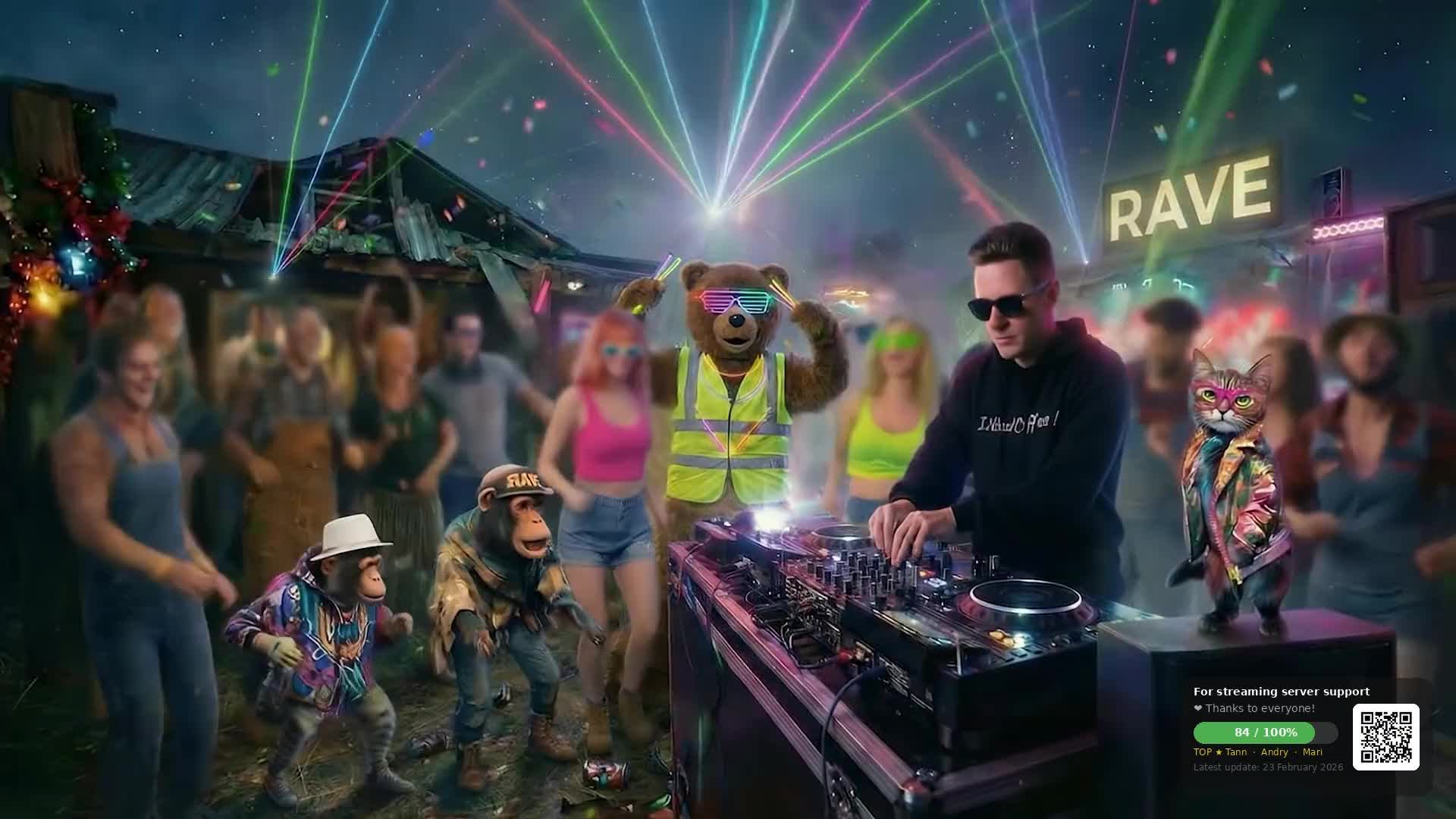 Рейв в деревне 24/7. Звёзды над головой, бас в груди. Кошачий продюсер и команда "рвут танцпол"