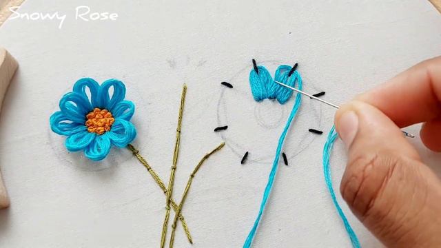 Embroidery tutorial - Easy 3d daisy flower embroidery - | Snowy Rose |