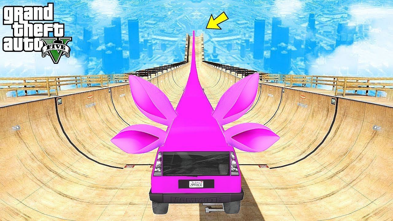 СПУСК БЕЗ ТОРМОЗОВ на ДЛИННОМ ЛИМУЗИНЕ ЛУНТИКА по МЕГА ТРАМПЛИНУ в ГТА 5 МОДЫ - ЭКСПЕРИМЕНТЫ в GTA 5