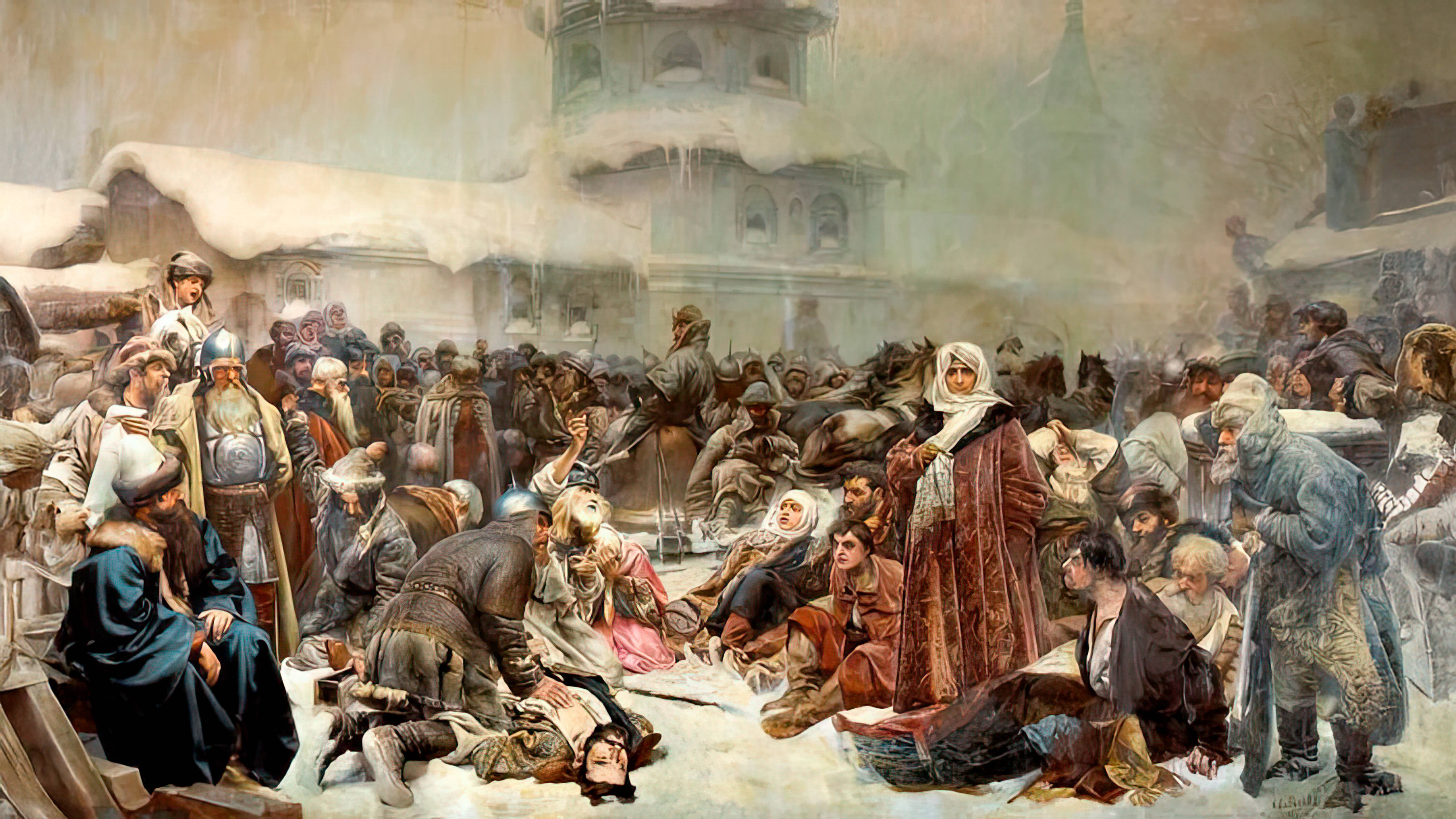 Лебедев Клавдий Васильевич 16 (28) октября 1852, Российская империя — 21 сентября (4 октября) 1916, Москва Русский исторический и церковный живописец, академик живописи и действительный член Императорской Академии художеств. Родился в крестьянской семье. В начале 1870-х годов начал учиться в Строгановском училище рисования, в 1875 году продолжил образование в Московском училище живописи, ваяния и зодчества. С 1877 года Клавдий Васильевич принимал участие в выставках, которые организует училище и Императорская Академия художеств. С 1891 года — действующий член объединения Товарищества передвижных художественных выставок. Жанровый живописец, писал в духе реализма на темы русской истории X–XVII веков. Оставил большое наследие в виде исторических полотен и рисунков со сценами из «домашнего быта» боярской Руси. Главным делом всей жизни стала роспись Вознесенского собора в г. Ельце. Совместно с А. И. Корзухиным расписывал Вознесенский собор в Ельце (1877 г.). В 1897 году Лебедеву присвоено звание академика, с 1906 года — действительный член Академии художеств. Умер художник 21 сентября 1916 года. Клавдий Васильевич Лебедев (1852-1916) - выдающийся русский художник, известный своими историческими и церковными картинами. Он учился в Строгановском училище и Московском училище живописи, ваяния и зодчества у таких мастеров, как В. Г. Перов и Е. С. Сорокин. Лебедев был жанровым живописцем, который писал в духе реализма на темы русской истории X—XVII веков. Его работы часто изображали сцены из "домашнего быта" боярской Руси. Он также иллюстрировал русские сказки и сотрудничал с журналами, такими как "Живописное обозрение" и "Всемирная иллюстрация". Кроме того, Лебедев занимался иконописью. Он расписывал Вознесенский собор в Ельце и создавал иконы для иконостаса болгарской церкви Святого Стефана в Стамбуле. В начале XX века он иллюстрировал Библию, создавая картины по Священной истории Ветхого Завета. Лебедев был членом общества передвижников с 1891 года и академиком живописи с 1897 года. Его работы хранятся в различных музеях и коллекциях, включая Третьяковскую галерею. Некоторые картины Клавдия Васильевича Лебедева: • «Марфа Посадница. Уничтожение новгородского веча» (1889) — Государственная Третьяковская галерея, Москва; • «Насильственный постриг» (1896) — Музей музыкальной культуры, Москва; • «Угощение шута» (1892); • «Дурка» (1892); • «В Московском приказе XVII в.» (1898); • «Отдохнул» (1900); • «К боярину с наветом» (1904) — Государственная Третьяковская галерея, Москва; • «Никита Зотов обучает царевича Петра Алексеевича» (1903); • «Прощание царицы Н.К. Нарышкиной с братом Иваном перед тем, как выдать его стрельцам» (1908); • «Молодой Пётр I и сокольничий» (1900) — Государственный Русский музей; • «Пётр I в Саардаме» (1908). Также художник писал жанровые полотна, например, «К сыну» (1894), «На родине» (1897), «Что-то случилось», «В церкви», «Иконописец» и другие.