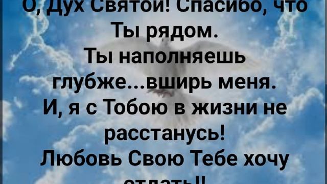 ХРИСТИАНСКИЕ ПЕСНИ ДЛЯ ХВАЛЫ И ПОКЛОНЕНИЯ ПРОСЛАВЛЕНИЯ ВООДУШЕВЛЕНИЯ ЕВАНГЕЛИЗАЦИИ ДУХОВНОГО РОСТА #господь#музыка#христианская_музыка#музика#христианскиепесни#бог#христианскиестихи#любовь#христианство#стихи#песня#песни#иисус#иисусхристос#иисусмойбог#иисус_христос#иисусбог#иисусгосподь#хвалы_и_поклонения#хваление#хвала#прославление#духсвятой#духовныйрост#духовноепробуждение#духовность#евангелие#евангелизация#евангельскаявесть#духовный_рост https://stihi.ru/avtor/zhanna70 "О, ДУХ СВЯТОЙ, СПАСИБО ЧТО ТЫ РЯДОМ!" СЛОВА, МУЗЫКА: ЖАННА ВОЛКОВА-ВАРЛАМОВА Стихи Жанна Волкова(Варламова) https://stihi.ru/2018/11/17/9372 Хочу я к Господу щекой своей прижаться! Хочу сказать:- Мой Папа! Я Тебя люблю! И, на свидание мне к Нему примчаться. Мой Папа, я Тебя люблю! Люблю! Люблю! Припев: О, Дух Святой! Спасибо, что Ты рядом. Ты наполняешь глубже...вширь меня. И, я с Тобою в жизни не расстанусь! Любовь Свою Тебе хочу отдать!!! О, Папа мой, с Тобою я в Завете! Рука об руку мы идём с Тобой. И, Духа дал Ты мне нежнее ветра. Со мною каждый день Он... И, с Ним я невредим!!! Припев: О, Дух Святой! Спасибо, что Ты рядом. Ты наполняешь глубже...вширь меня. И, я с Тобою в жизни не расстанусь! Любовь Свою Тебе хочу отдать!!! О, Дух Святой, со мною Ты! Я счастлив! Ты помогаешь мне в земном пути. Спасибо говорю, что обезопасил. Врагу Ты руку укоротил. Припев: О, Дух Святой! Спасибо, что Ты рядом. Ты наполняешь глубже...вширь меня. И, я с Тобою в жизни не расстанусь! Любовь Свою Тебе хочу отдать!!! О, Дух Святой! Спасибо, что Ты р Ты наполняешь глубже...вширь меня. И, я с Тобою в жизни не расстанусь! Любовь Свою Тебе хочу отдать!!! 17.11.2018 Жанна Волкова-Варламова