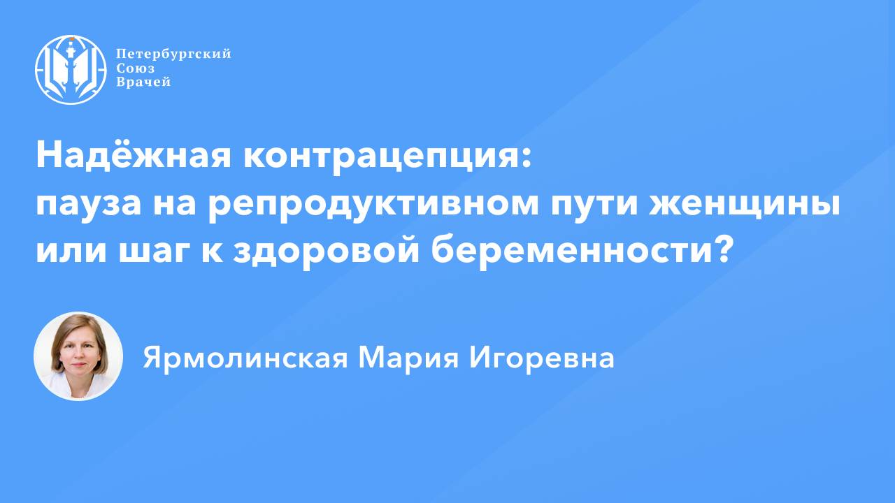 Надёжная контрацепция: пауза на репродуктивном пути женщины или шаг к здоровой беременности? Дата проведения: 28.04.2025, 20:00 Страница мероприятия: https://spb.doctor/i/250428/ Программа: 1. Новое в Российских клинических рекомендациях: Контрацепция. Наблюдение за применением противозачаточных средств Ярмолинская Мария Игоревна 2. Патогенетически обоснованная микронутриентная поддержка на этапе прегравидарной подготовки Ярмолинская Мария Игоревна 3. Ответы на вопросы О семинаре: Контрацепция является не только эффективным методом профилактики незапланированной беременности, но и способом планирования семьи и сохранения репродуктивного здоровья женщины. В онлайн-семинаре будет представлена информация о современных видах и методах контрацепции, показаниях и противопоказаниях, алгоритмах индивидуального подбора, дополнительных неконтрацептивных лечебных эффектах. Эксперт расскажет, почему необходимо ориентироваться в контрацептивах и их особенностях не только акушерам-гинекологам, но и врачам смежных специальностей.