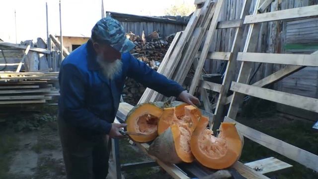 Вся польза от 30-ти килограммовой тыквы, завтрак курам и пол сковородки семечек.mp4