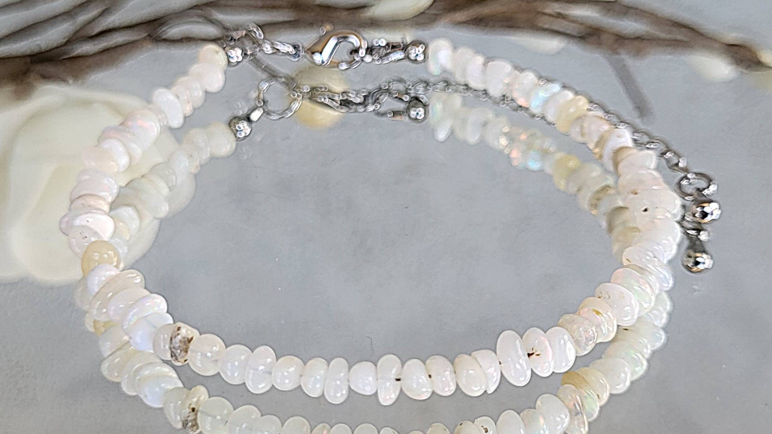 Браслет украшения из натуральных камней. Браслет из опала (Мексика): опал галтовка мелкая 3 мм., длина 18 см. (на запястье от 15 см.)