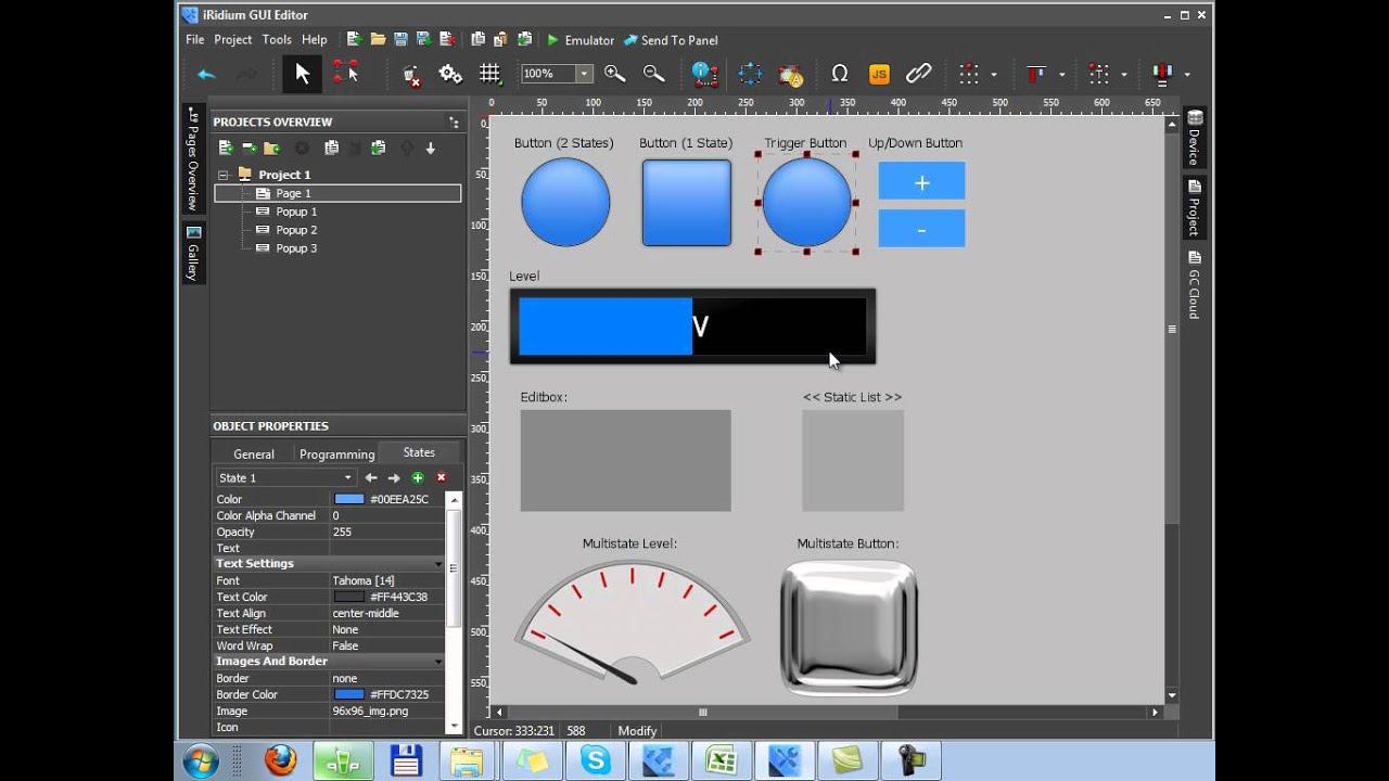 Types of graphic items in iRidium GUI Editor: description and main properties.