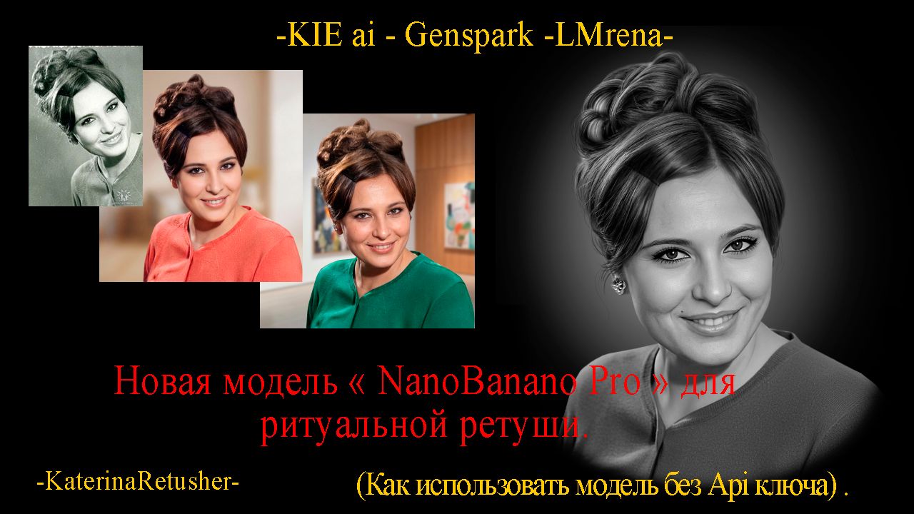 Вы узнаете, как можно бесплатно использовать новую модель от Google - "NanoBanano Pro", на каких площадках и сервисах. Или как купить кредиты для генераций используя для оплаты карты РФ. Ссылки для нейросетей : - https://aistudio.google.com - Google ai studio - основная площадка. - https://www.genspark.ai/ - нейросеть с бесплатным использованием "Nanobanano Pro". - https://kie.ai/market - нейросеть с покупкой кредитов ( российские рубли). - https://lmarena.ai/ru - нейросеть, площадка для тестирования ( бесплатная модель Gemini Pro и NanoBanano Pro) Промт используемый в видео : "Ultra-realistic recreation of an old vintage photo, keeping the same original face (99% likeness, no alteration). Transform into a modern high-quality digital portrait with vibrant updated colors, smooth realistic skin textures, and natural lighting. The outfit and background should be upgraded into a clean, modern aesthetic while preserving the authenticity of the original pose and expression."