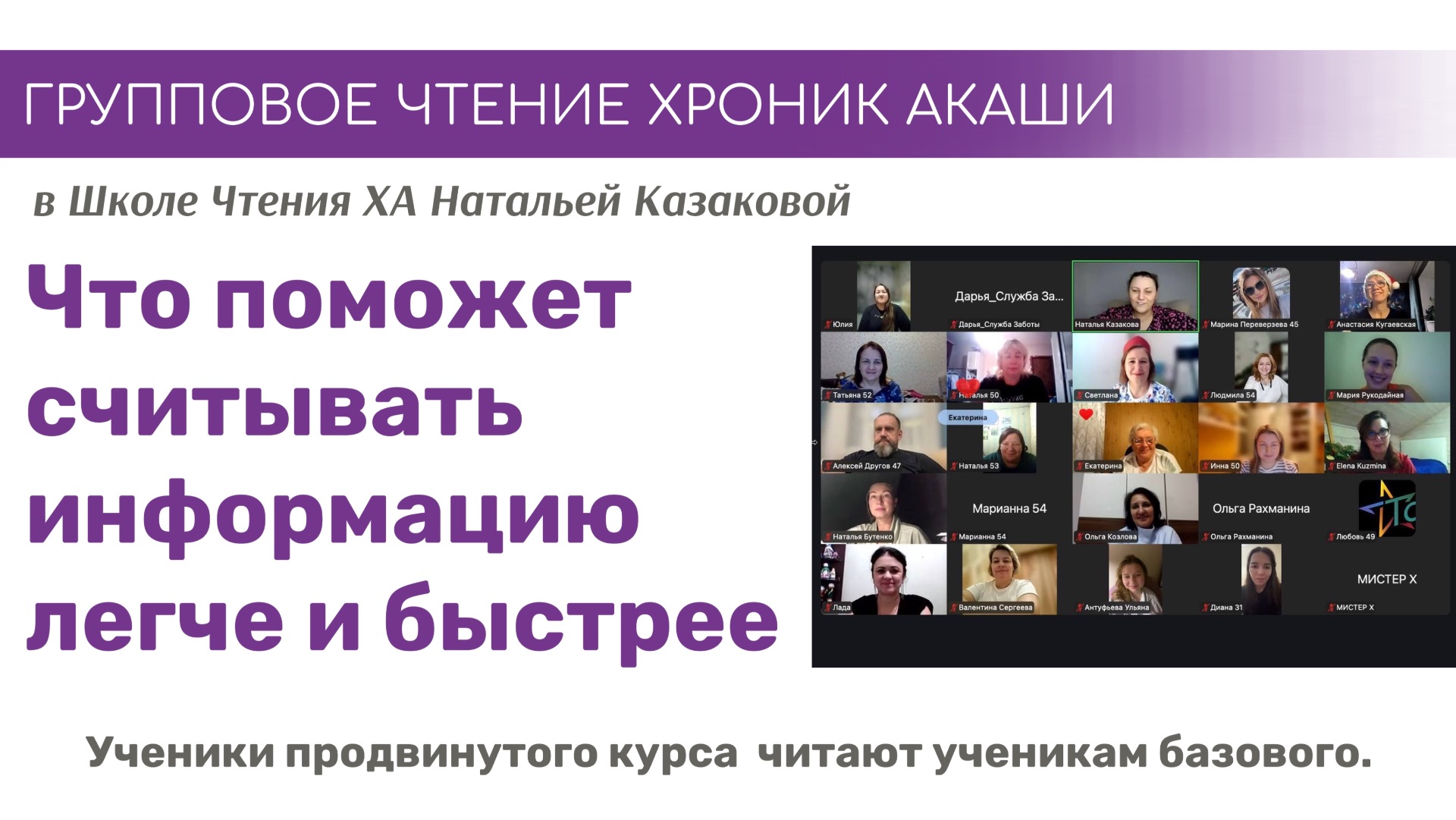 Вчера у нас прошло заключительное занятие продвинутого курса. К встрече присоединились будущие участники базового курса, стартующего в марте. Участники продвинутого курса работали с ними индивидуально: читали Хроники о том, что помогает быстрее и легче считывать информацию и углублять навык чтения Хроник. Кроме того, это была тёплая предварительная встреча-знакомство: участники смогли увидеть друг друга, почувствовать пространство и заочно познакомиться с группой ещё до начала обучения. Если ты чувствуешь отклик и хочешь научиться глубже считывать информацию и работать с этим инструментом уверенно и экологично — базовый курс стартует уже в марте!