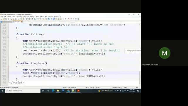 String function toUpperCase(), toLowerCase(), slice(), substr(), substring(), charCodeAt(), replace() #motoweb solutions