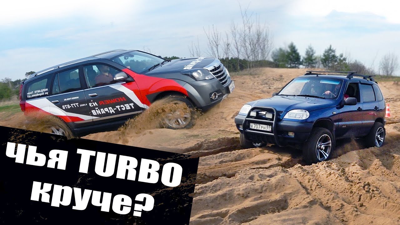 Внедорожная битва двух Турбо внедорожников. Нива Шевроле и DW Hower H5. Оба автомобиля имеют в своём оффроуд арсенале понижающий ряд передач. У Нивы установлена задняя блокировка. Ховер оснащён имитациями блокировок. Внедорожники на механических коробках передач.