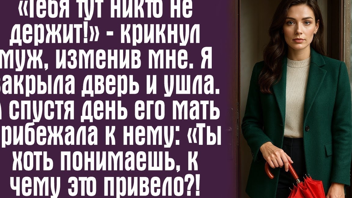 «Тебя тут никто не держит!» — крикнул муж, изменив мне. Я закрыла дверь и ушла. А спустя день его...