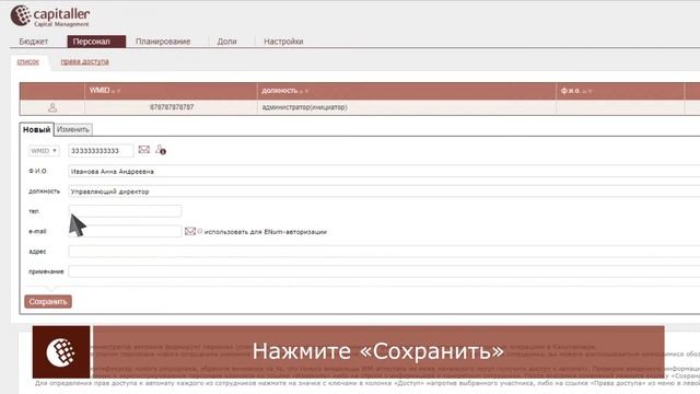 WebMoney Capitaller: Назначение персонала БА