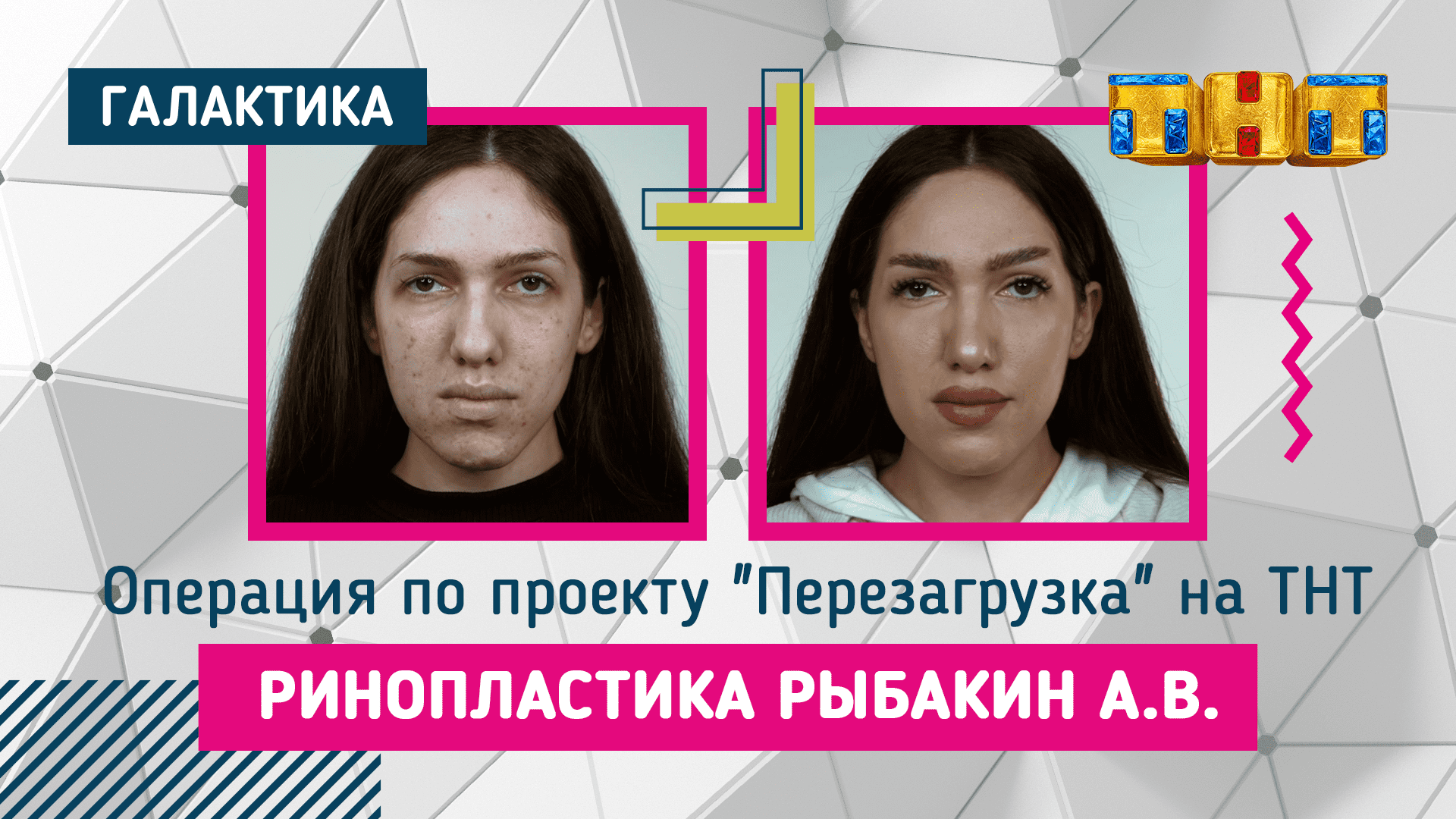 Пациентке была проведена операция в рамках проекта перезагрузка на телеканале ТНТ. Она пришла с проблемой - ее нос имел горбинку и загнутость на конце. Ей провели верхнюю блефаропластику и риносептопластику. Работа была не только с перегородкой носа, чтобы не только улучшить дыхание, но еще и изменили форму носа. В результате операции у пациентки улучшилось дыхание, кончик носа стал короче и аккуратнее. Также была устранена горбинка и распахнулись веки. ⌚ Нажмите на цифры для навигации по времени ролика: 0:02 Комментарий пациентки о результате операции 0:23 Комментарий пациентки о ее новом восприятии себя 0:51 Комментарий пациентки об уверенности в себе 0:45 Комментарий пациентки об улыбке после операции 1:47 Слова благодарности клинике "Галактика" и Рыбакину А.В Официальный сайт: http://galaktika.clinic ? +7 (495) 648 68 38 ? info@galaktika.clinic INSTAGRAM: https://www.instagram.com/galaktika.clinic https://www.instagram.com/galaktika.clinic FACEBOOK: https://www.facebook.com/galaktika.clinic #Галактика_клиника #Галактика_пластика #galaktika_clinic #ринопластика #ринопластикамосква #сделатьринопластику #сделатьринопластикувмоскве #пластиканоса #пластиканосамосква #блефаропластика #сделатьблефаропластику #блефаропластикавмоскве #операциявек #операциянавеках