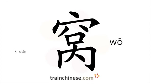 窝 (wō) nest; shelter; fossa; brood; pit; den; litter