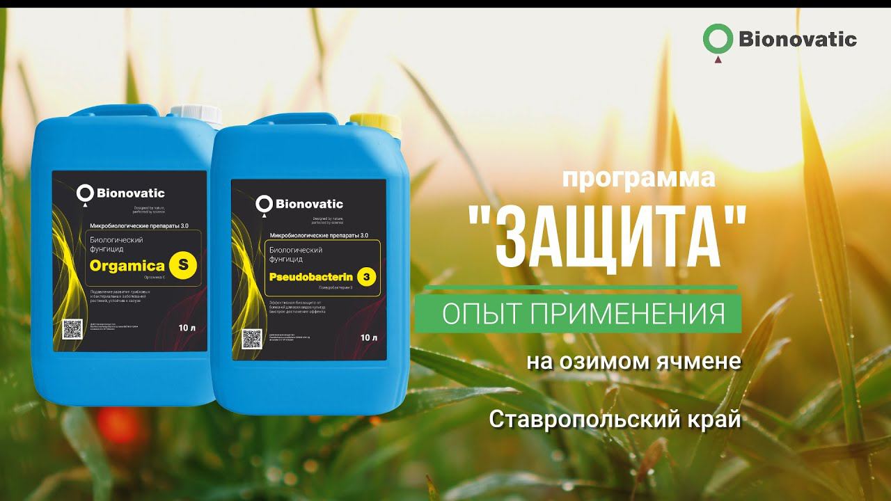 Красногвардейский район Ставропольского края Озимый ячмень Три варианта фунгицидных обработок: 1 Вариант – технология хозяйства (2 фунгицидных обработки – 22 марта 2023 г. и 10 апреля 2023 г) 2 Вариант – технология хозяйства (1 фунгицидная обработка – 10 апреля 2023 г) 3 Вариант – (1 обработка - 22 марта 2023 г.): программа «Защита» - биологические фунгициды Orgamica S -1 л/га, Pseudobacterin 3 -1 л/га Вывод: Опытный вариант обработки с применением биологических фунгицидов компании Bionovatic (Orgamica S, 1л/га + Pseudobacterin-3, 1л/га) наиболее предпочтителен для фунгицидной обработки: при достаточно высокой эффективности в подавлении фитопатогенных грибов, он также не оказывает негативного воздействия на супрессивную микрофлору