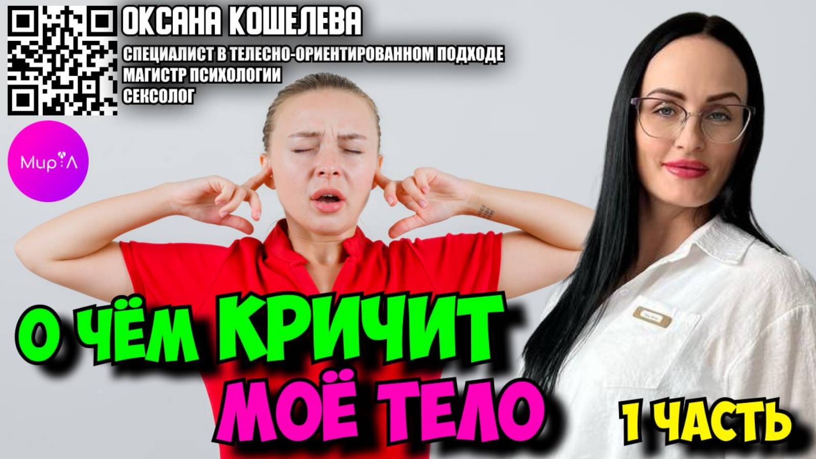 Тема эфира: О ЧЁМ КРИЧИТ МОЁ ТЕЛО. ЧАСТЬ 1. СВЯЗЬ ТЕЛА И ПСИХИКИ. На эфире :⤵️ 📌О том, что такое телесно ориентированная психотерапия на самом деле и как с её помощью можно научиться чувствовать и слышать себя. 📌Перестать болеть и страдать в отношениях и в жизни в целом. ➖➖➖ Связаться со спикером: ⤵️ 💬 https://t.me/OksanaKosheleva 💬 https://t.me/klub_OK_psy ➖➖➖ В нашем сообществе Мир: Л вы можете найти для себя специалистов и решить вопросы по темам здоровья, отношений и финансов. Добавляйтесь в наш чат Telegram и задавайте свои вопросы специалистам https://t.me/mirlru Участвуйте в вебинарах в нашем Telegram канале https://t.me/+qhq6oCvxcX44MzFi Сайт марафона ⤵️ https://mir-l.com/marafon Также вы можете стать у нас спикером и поделиться с нашими участниками своими знаниями 🙏 Оставьте заявку на участие ⤵️ https://docs.google.com/forms/d/e/1FAIpQLSe6xciS7oQDJg90mik3NUJUxY1-N3mx2JlkKPEWSwsi5MalVg/viewform?usp=sf_link Мы в Инстаграм https://www.instagram.com/mirl_ru ⠀ Мы ВКонтакте https://vk.com/mirl_ru ⠀ Наше сообщество в Одноклассниках https://ok.ru/group/60202414309536 #психология #саморазвитие #личностныйрост #духовныйучитель #вебинар #самопознание #курсы #образование #психолог #коуч #эзотерика #таролог #нумеролог #астролог #отношения #саморазвитие #жизнь #психологонлайн