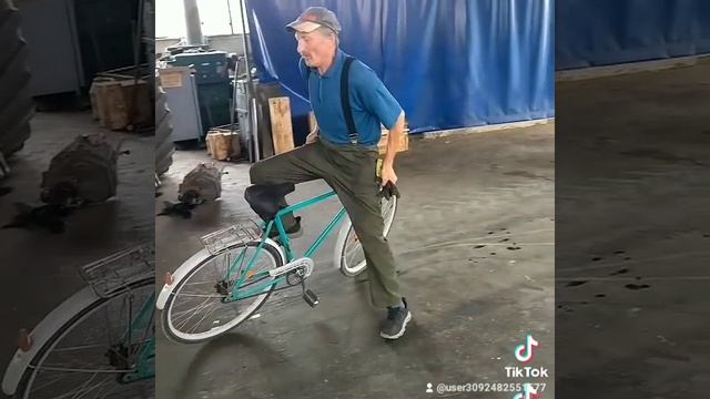 Мужчина на велосипеде проехал задом наперёд по мастерской