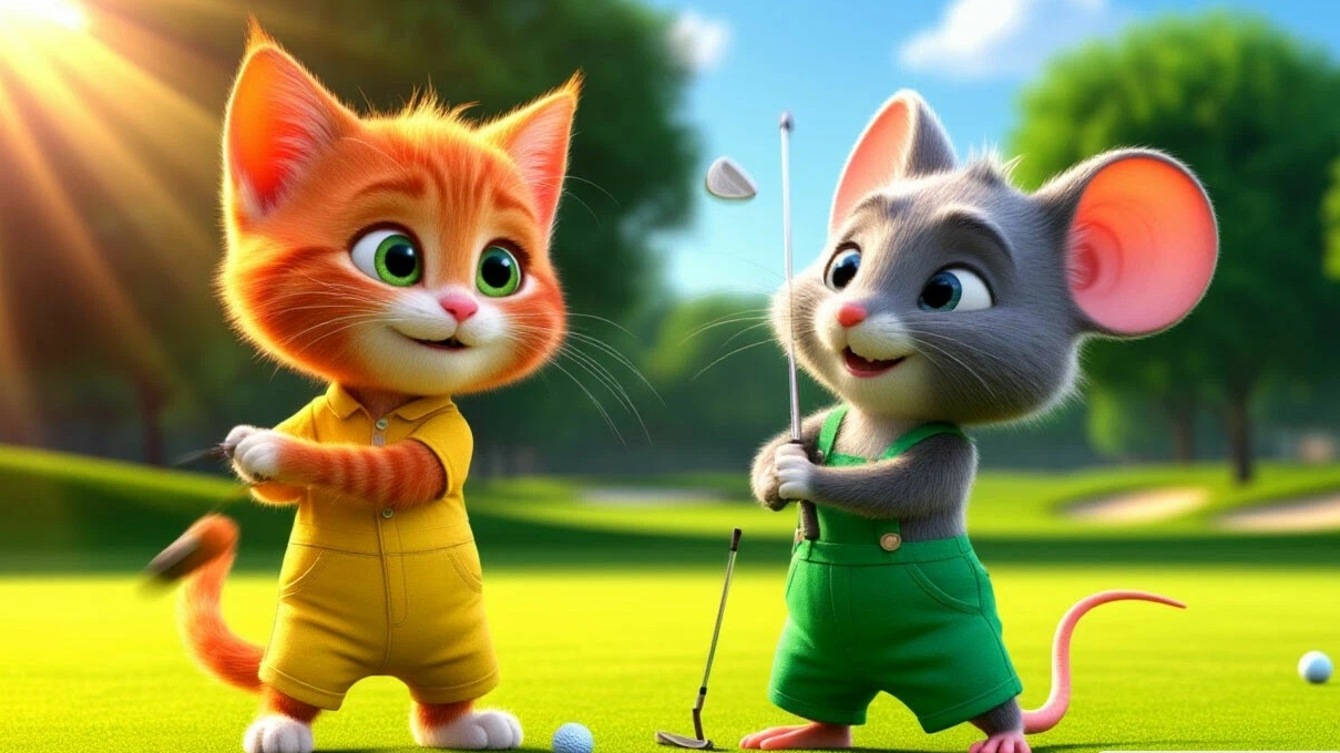 Анимационный мультфильм - 8 выпуск: Приключения в мире гольфа: Рыжий котёнок и серый мышонок.