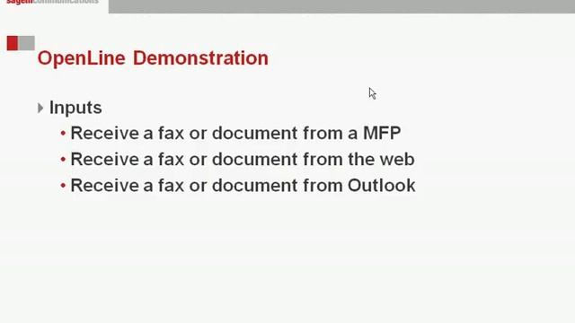 OpenLine Demonstration - INPUTS. The different ways to receive documents and faxes into OpenLine, and one would want to.