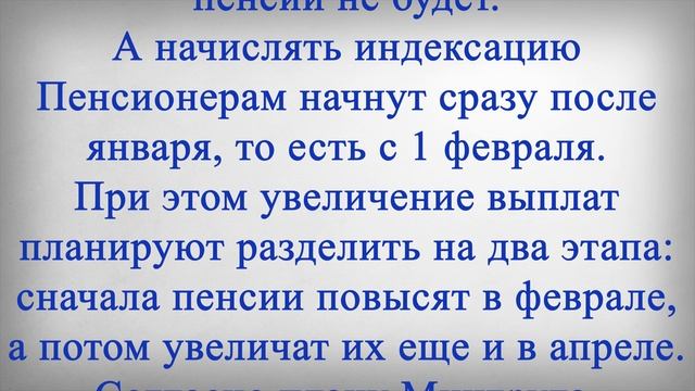 Еще по 1 000 рублей! Пенсионеров ждет Новая Индексация Пенсий после Января! Российским пенсионерам рассказали о новой индексации пенсий, которая будет идти сразу после января. В таком случае прибавка составит для неработающих граждан уже не менее тысячи рублей, поскольку минимальные показатели будут выше. Но начисляться такая индексация будет в два этапа. Новая индексация выплат сразу после января ждет российских пенсионеров через два года. С 2025 года, как ожидается, механизм начисления прибавки по страховым пенсиям, которые получают большинство пенсионеров в нашей стране, претерпит изменения. Так, если сейчас индексация традиционно проводится каждый год с 1 января, то через два года в первом месяце прибавки для получателей страховых пенсий не будет. А начислять индексацию пенсионерам начнут сразу после января, то есть с 1 февраля. При этом увеличение выплат планируют разделить на два этапа: сначала пенсии повысят в феврале, а потом увеличат их еще и в апреле. Согласно плану Минтруда, в следующем году индексация пенсий должна будет пройти еще в январе, предварительно на 6,1 процента. А в 2025 году страховые выплаты сначала повысят в феврале на 4 процента, а потом в апреле еще на 3,6 процента. То есть общая индексация по году составит почти восемь процентов. При этом каждый неработающий пенсионер через два года сможет получить прибавку уже в размере не менее одной тысячи рублей. Ведь прожиточный минимум для пенсионеров, который с этого года составляет 12 363 рубля, спустя год должен вырасти примерно до 13 100 рублей. А к 2025 году, по плану, он превысит уровень в 14 110 рублей. Это значит, что минимальные пенсии увеличатся гарантированно на тысячу рублей. Но, скорее всего, у большинства пенсионеров прибавка будет еще больше. Ставьте лайк если считаете, что такого повышения пенсий недостаточно и напишите каким и как часто, по-Вашему, должно быть повышение пенсий?