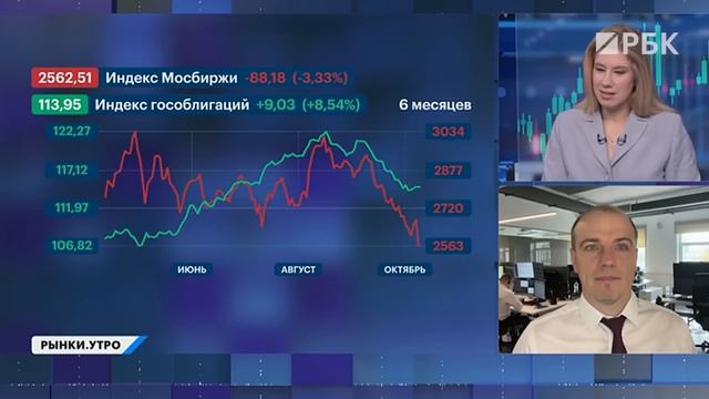 Подписывайтесь на канал: https://www.youtube.com/channel/UCD23js7wHnyG_yhimDMpLpg?sub_confirmation=1 --------------------- Мы плакали, но продолжали верить в российский рынок акций. 8 октября индекс Мосбиржи понес максимальные за последние полгода: на минимуме он падал на 4,5% по отношению к закрытию предыдущей основной торговой сессии — до 2548,37 пункта. ❓ Обсудим, почему произошло такое резкое снижение, сколько будет продолжаться этот негативный тренд и главное — что делать инвестору на текущем рынке? Утром четверга, уже традиционно, обсуждаем и новые данные по инфляции, и рубль, и бюджет... Все, как вы любите. Поговорим о том, что будет с бюджетом в декабре, какой курс рубля ждать в 2026 году и что на него повлияет. И, конечно же, на повестке заседание ЦБ по ключевой ставке, до которого осталось две недели. Ведущая: Алевтина Пенкальская Гости: — Александр Иванов, аналитик по макроэкономике УК «Ингосстрах-Инвестиции» — Сергей Голенищев, старший персональный брокер «БКС Мир инвестиций» 00:00 Индекс Мосбиржи шатает 01:30 Банк России не снизит ключевую ставку в октябре? 03:00 Прогноз по инфляции 04:30 Почему снижается рынок 08:00 До какого уровня будем падать? 08:50 Что делать инвестору на текущем рынке 10:15 Прогноз по ключевой ставке 12:00 С чем связано снижение продаж валюты экспортёрами 14:00 Как бюджет влияет на инфляцию 15:40 Минфин разместит флоатеры? 16:20 Что будет с курсом рубля 19:03 Прогноз по нефти 19:17 Мы на пороге рецессии? --------------------- #РБК #инвестиции #рынки --------------------- Подпишитесь на нас в соцсетях: Telegram-канал «Сам ты инвестор»: https://t.me/selfinvestor Telegram-бот «РБКарп Дивиденды»: https://web-telegram.ru/#/im?p=@Karpinvest_bot Рассылки РБК Инвестиции: https://investletter.rbc.ru/ VK: https://vk.com/rbc_investments