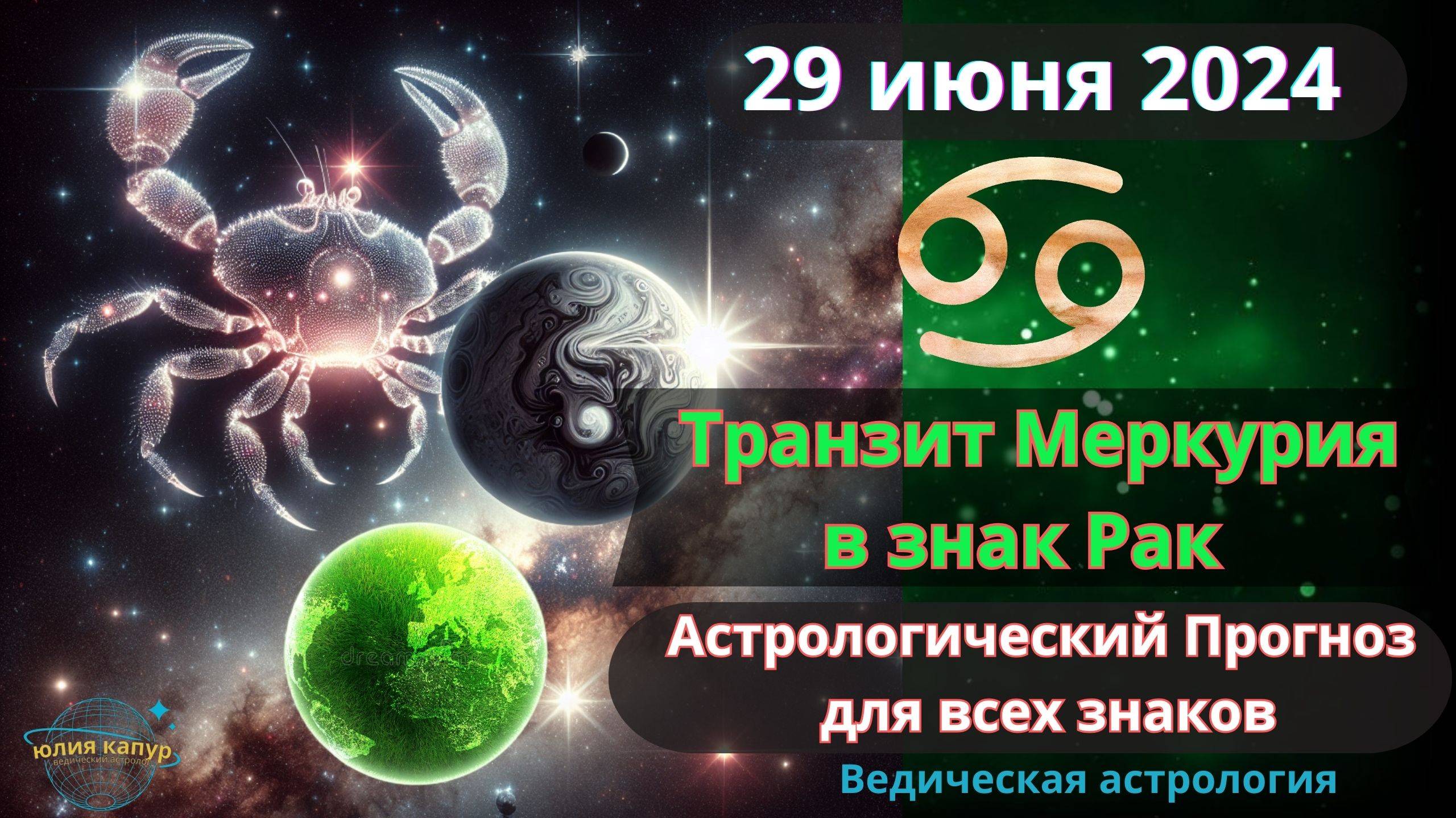 29 июня 2024 ♋ Транзит Меркурия в знаке Рак! Астрологический прогноз для всех ! От Юлии Капур