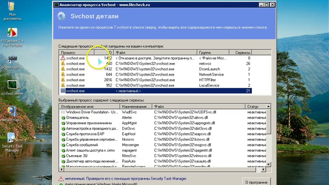 Анализатор процесса svchost.exe и Security Task Manager
