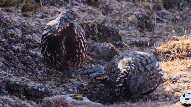 Снежная куропатка Lerwa lerwa — вид куропаток из семейства фазановых. Единственный представитель своего рода. У птиц короткие округлые крылья и сильный клюв. У самцов на ногах шпора. Оперение верхней части тела самца и самки, а также головы и шеи полосами чёрно-белого цвета. Нижняя часть тела каштанового цвета. Клюв и ноги кораллового цвета. Вид населяет Гималаи от Кашмира и Гархвала до Тибета, а также несколько высокогорных массивов в Китае. Птицы обитают на покрытых травой склонах гор и в ущельях скал на высоте от 2900 до 5500 м над уровнем моря. https://t.me/rechnaya_derevnia/532 https://vk.com/wall-212689976_933