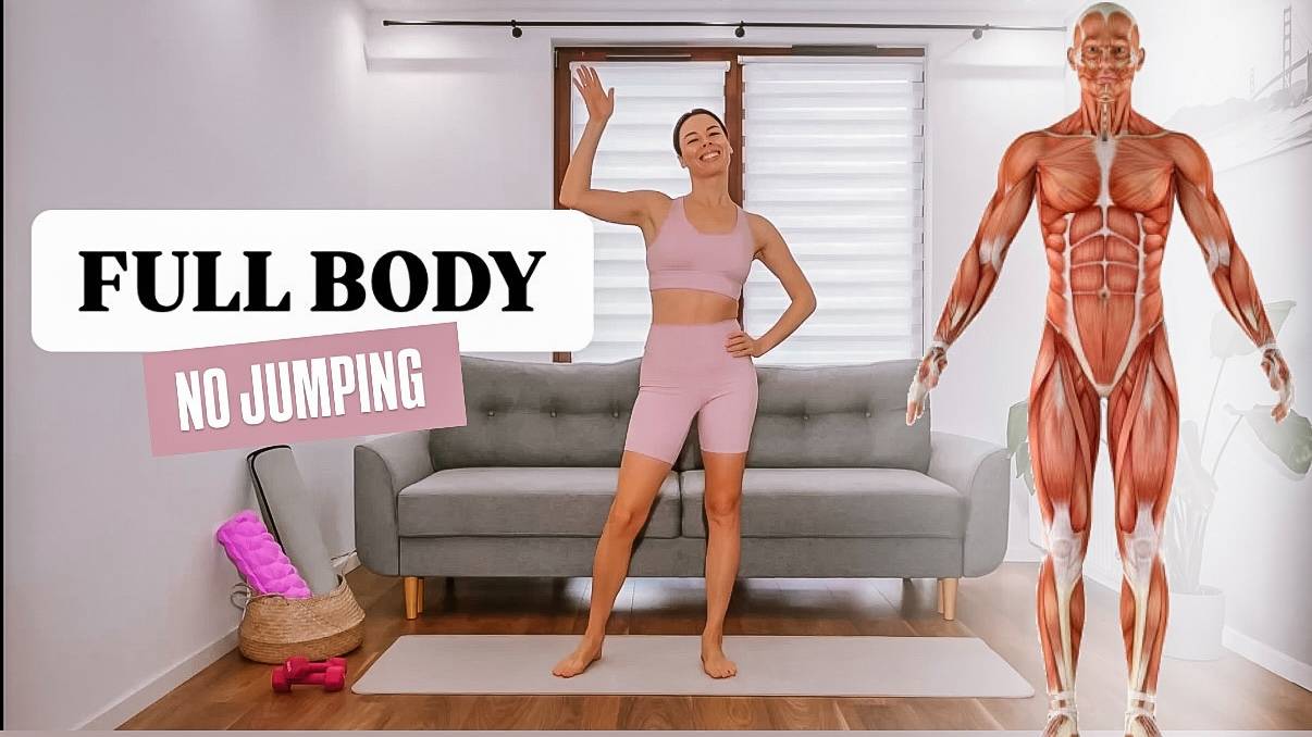 15 min Burn Fat Full Body No Jumping Workout with Dumbbells