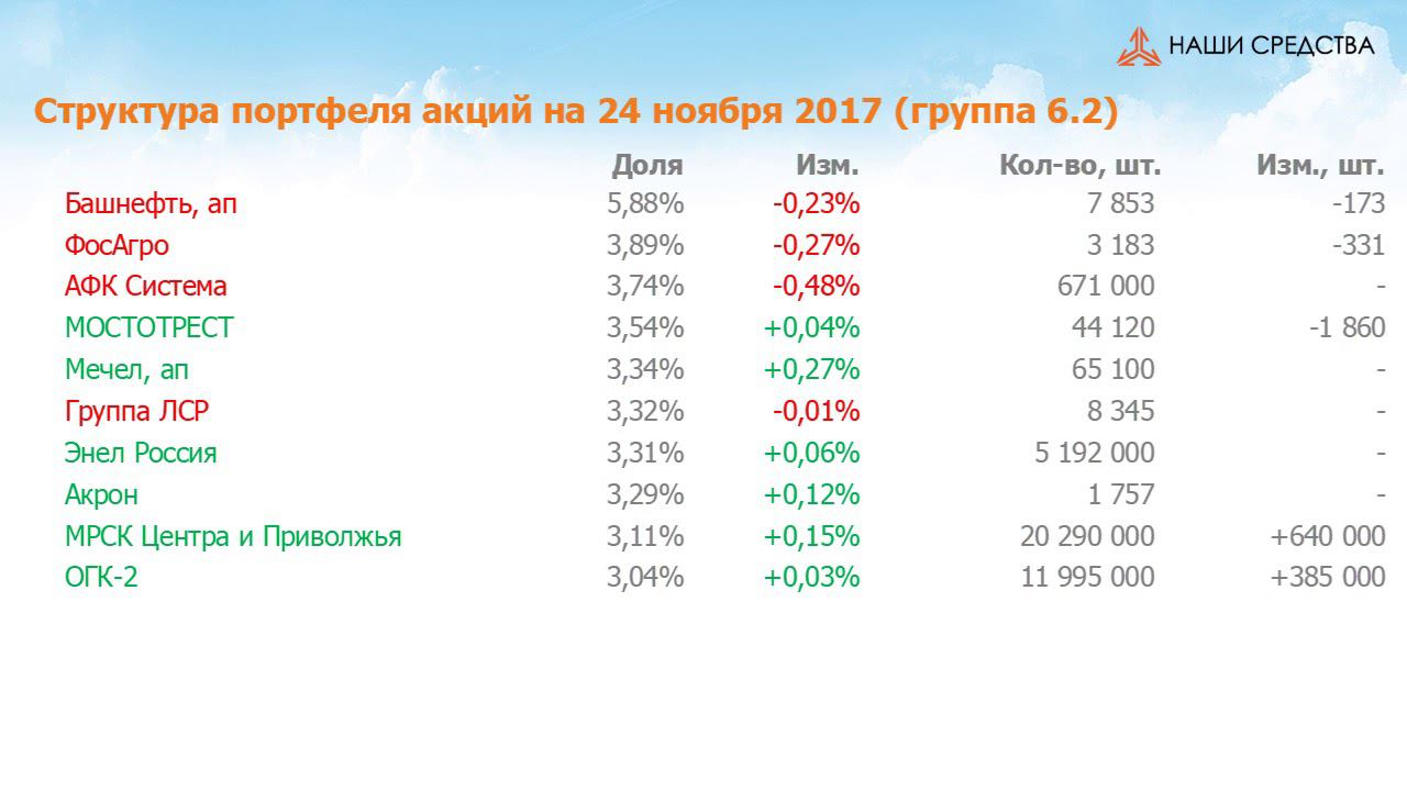 Собственные средства компании #140. Обзор с 10.11.17 по 24.11.17