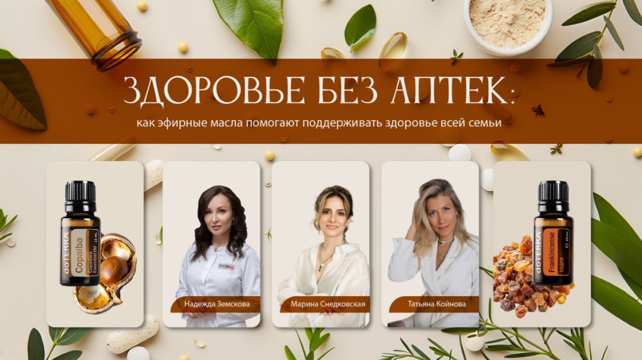 Здоровье без аптек: как эфирные масла помогают поддерживать здоровье всей семьи Большинство людей узнают про эфирные масла очень случайно. Кто-то слышал, что ими «можно помазаться». Кто-то думает, что это просто вкусно пахнет. Но на самом деле эфирные масла - мощнейший инструмент поддержки организма. Сегодня их используют миллионы людей по всему миру. На вебинаре мы поговорили о том: 📍 что такое эфирные масла и за счёт чего они работают в организме 📍 какие задачи со здоровьем можно решить с их помощью 📍 как применять эфирные масла в обычной жизни 📍 с каких масел лучше начать, если вы только знакомитесь с ароматерапией Простое и понятное знакомство с ароматерапией, после которого у вас сложится ясная картина того, как эфирные масла могут стать частью повседневной заботы о здоровье семьи.