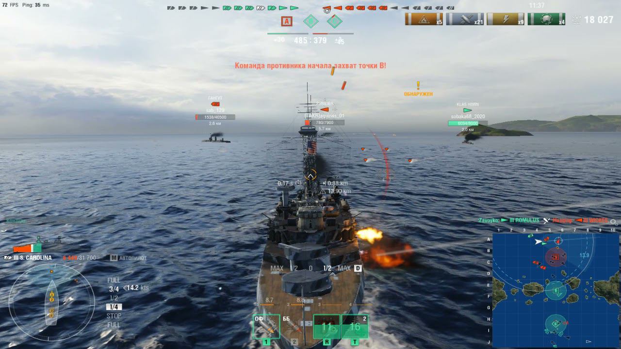 Американский линкор Carolina.Морской бой-4.Игра World Of Warships