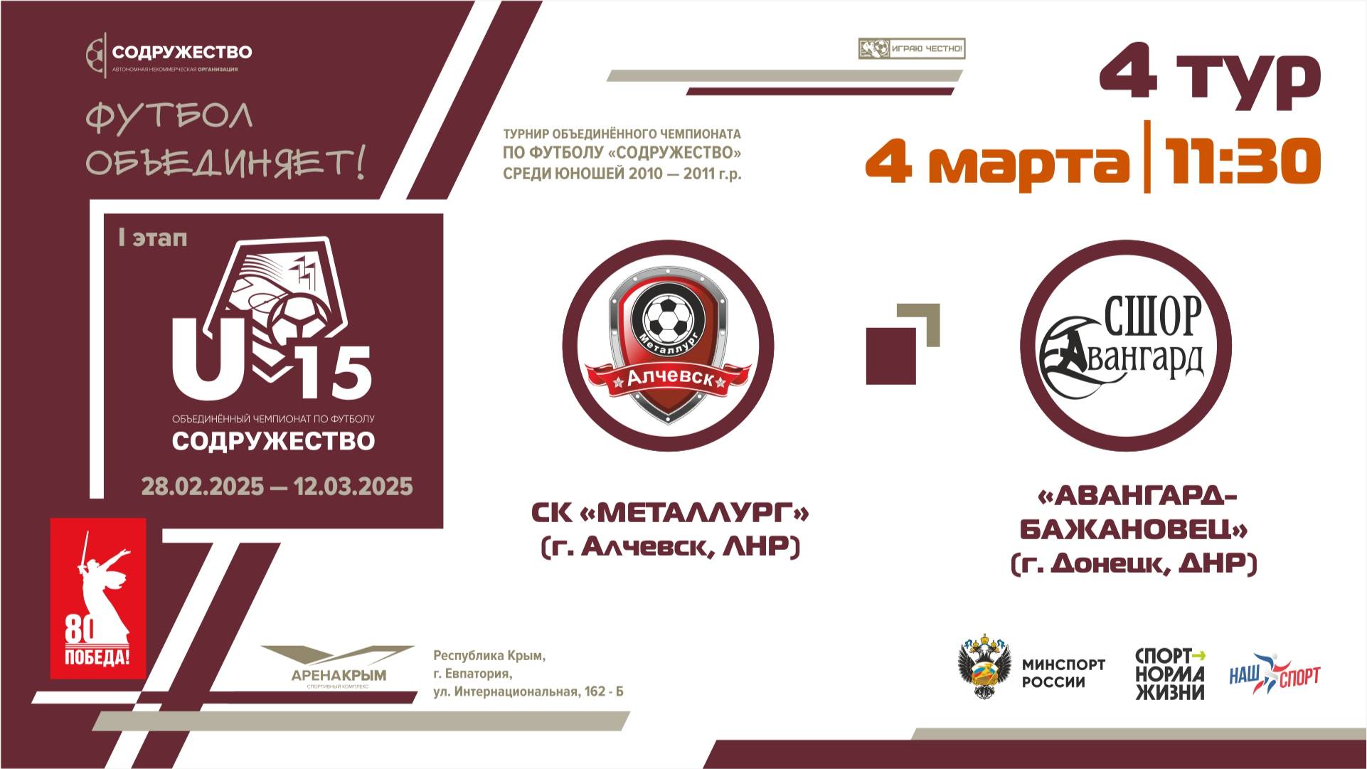 4 ТУР | U-15 | СК "Металлург" (Алчевск, ЛНР) - "Авангард-Бажановец" (г. Донецк, ДНР)