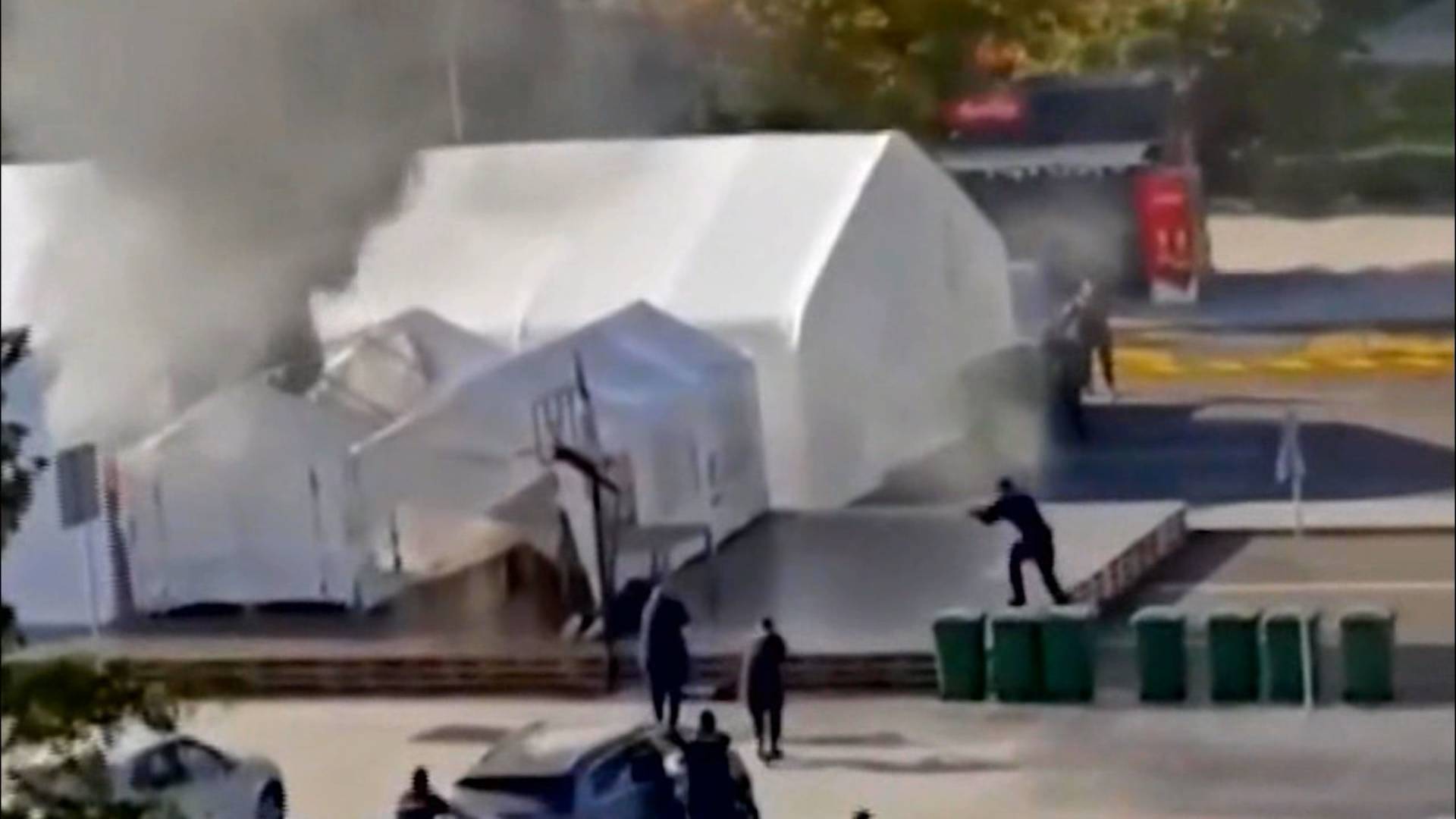 В центре Белграда напротив здания Народной Скупщины (парламент) открыли стрельбу, сообщают. Это произошло в Пионерском парке. По сведениям изданий, 57-летний человек получил ранение в ногу и был госпитализирован. Нападавший выстрелил в газовый баллон, из-за чего загорелась стоявшая на площади палатка, и был вскоре обезврежен полицией. Огонь потушили.