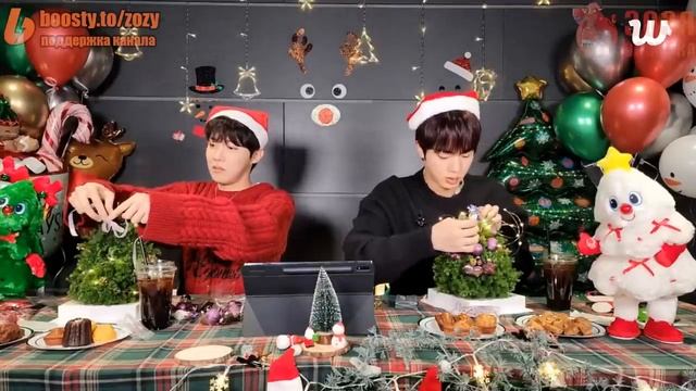 🎞️Джин и Хосок LIVE на WEVERSE 23.12.24 "Рождественский эфир" Озвучка Зозя